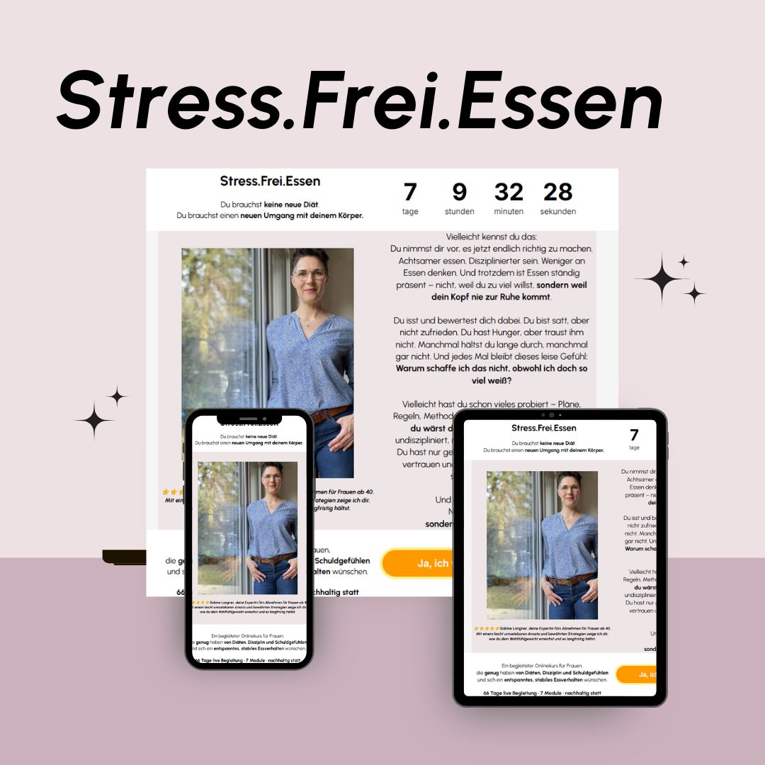 Stress.Frei.Essen ist ein begleiteter Onlinekurs für Frauen, die ihr Essverhalten nachhaltig verändern möchten – ohne Diäten, ohne Verbote und ohne sich selbst ständig zu kontrollieren.
